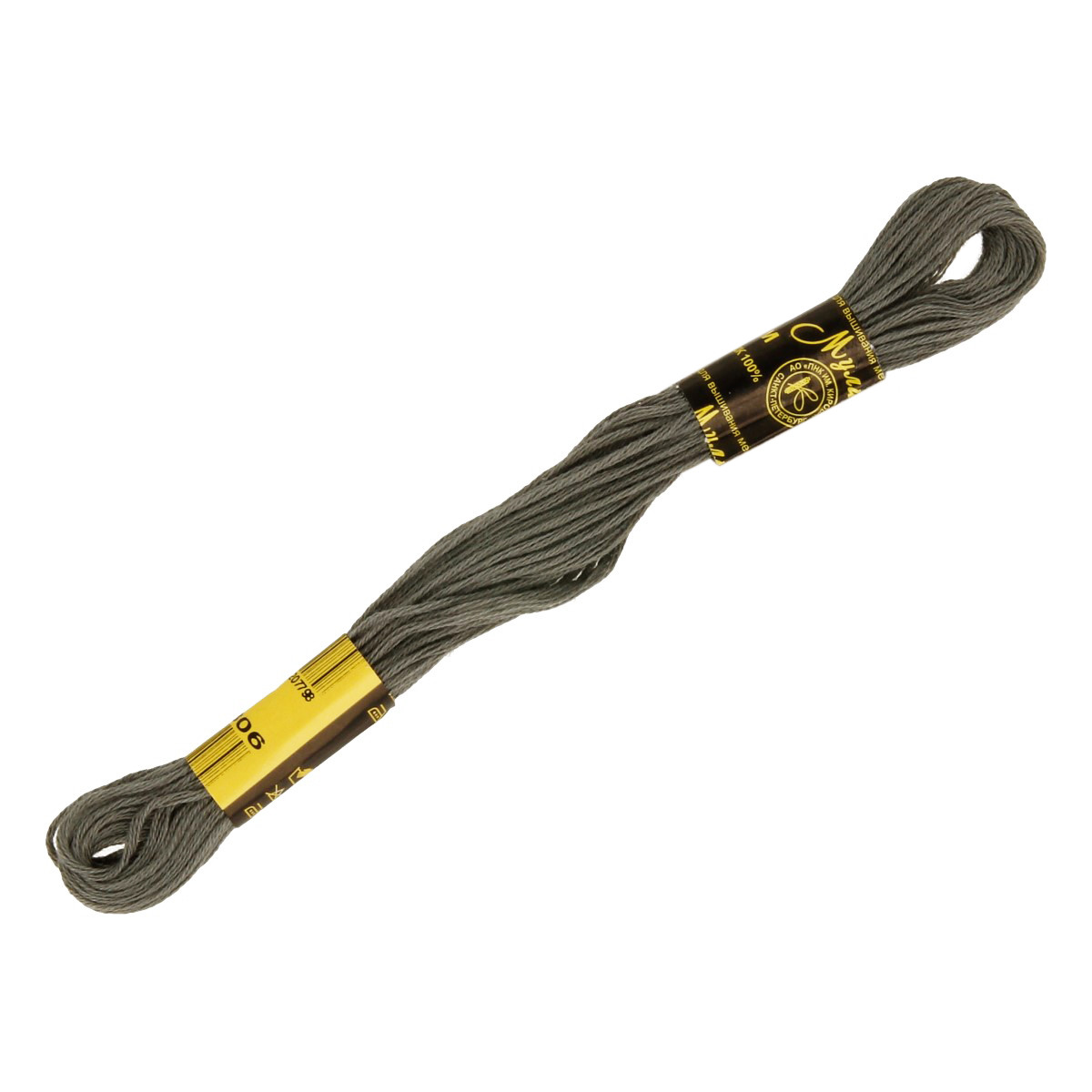 Нитки для вышивания " ПНК им. Кирова" мулине 100% мерсеризованный хлопок 8 м №7004 серый