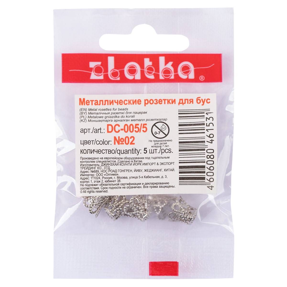 Розетка для бус " Zlatka" DC- 005/ 5 служат для декоративного обрамления бусин. Они предотвращают истирание покрытия бусин в месте их соприкосновения друг с другом и продлевают срок службы украшения. Высота 8 мм ± 2 мм. Диаметр отверстия 1. 5 мм. 100% железо. Сообщить о неточности в описании